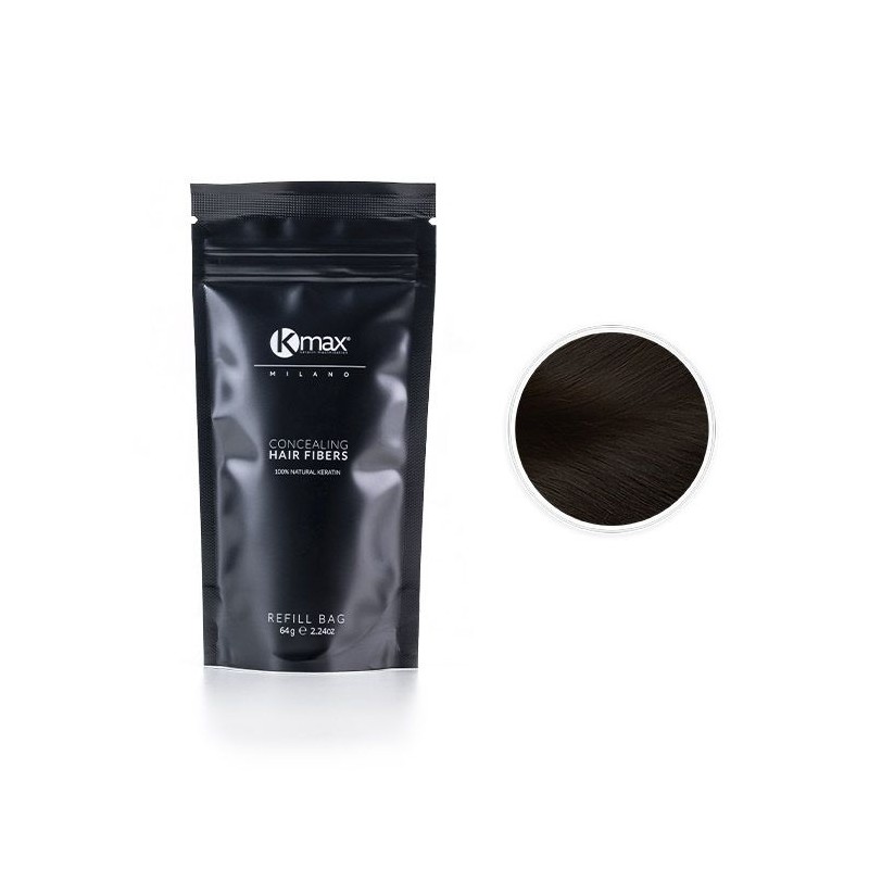 Kmax Concealing Hair Fibers hat eine innovative Formel, dank der die Mikrofasern aus Keratin elektrostatisch an dünner werdenden, feinen und semi-transparenten Haaren haften. Innerhalb weniger Sekunden entsteht unglaubliches Volumen und die dünneren Stellen auf der Kopfhaut werden kaschiert.