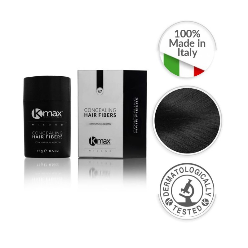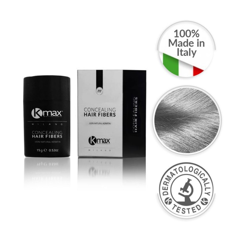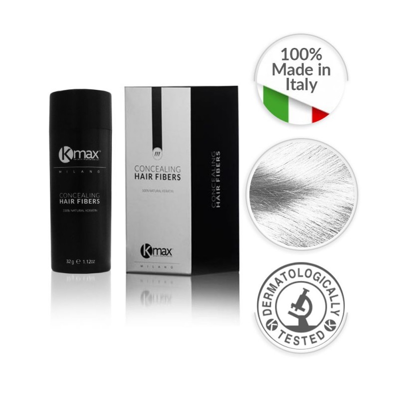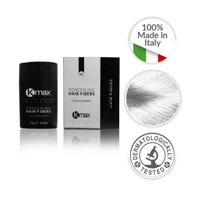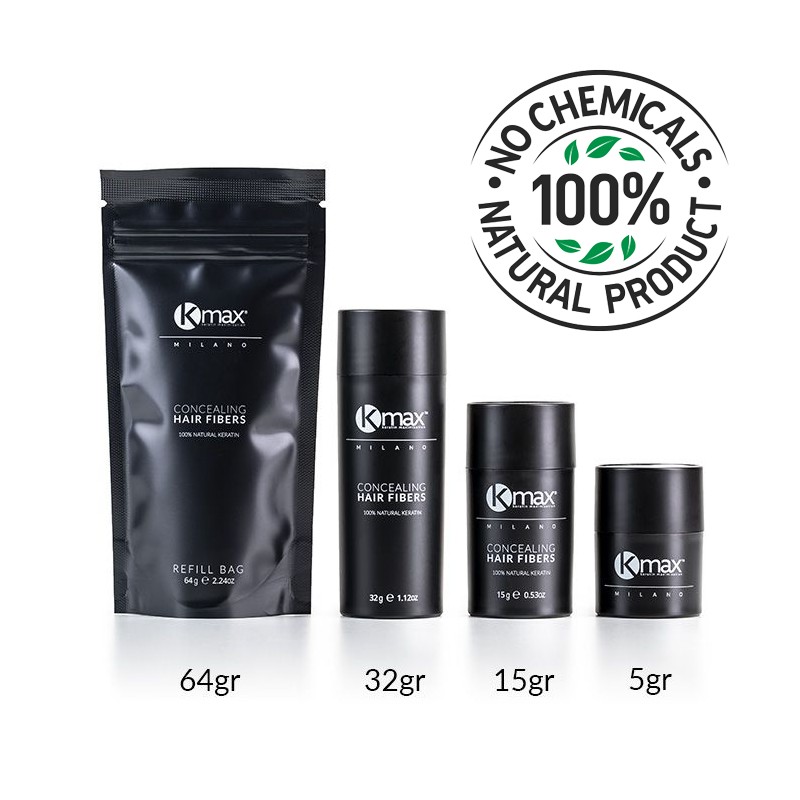 Kmax Concealing Hair Fibers hat eine innovative Formel, dank der die Mikrofasern aus Keratin elektrostatisch an dünner werdenden, feinen und semi-transparenten Haaren haften. Innerhalb weniger Sekunden entsteht unglaubliches Volumen und die dünneren Stellen auf der Kopfhaut werden kaschiert.