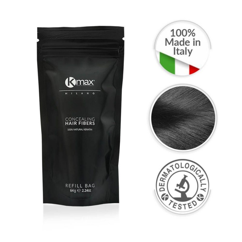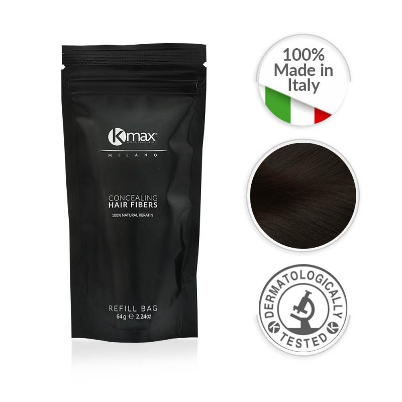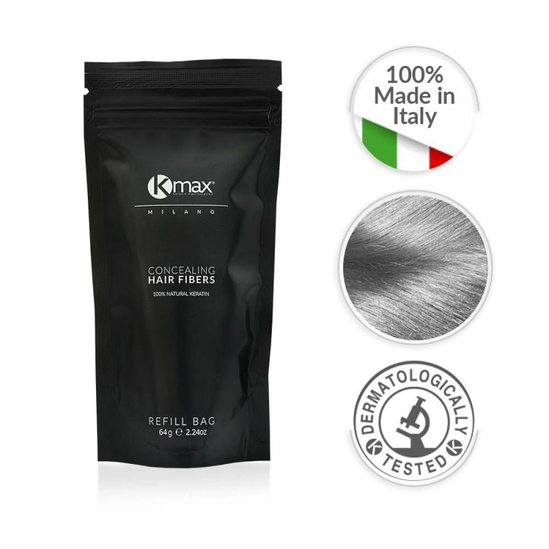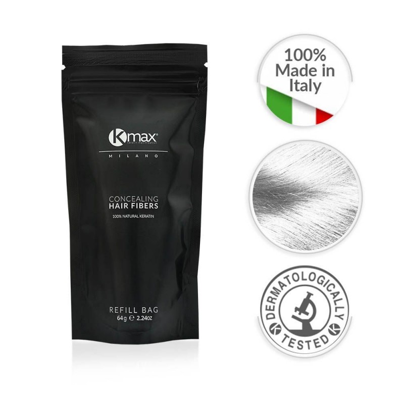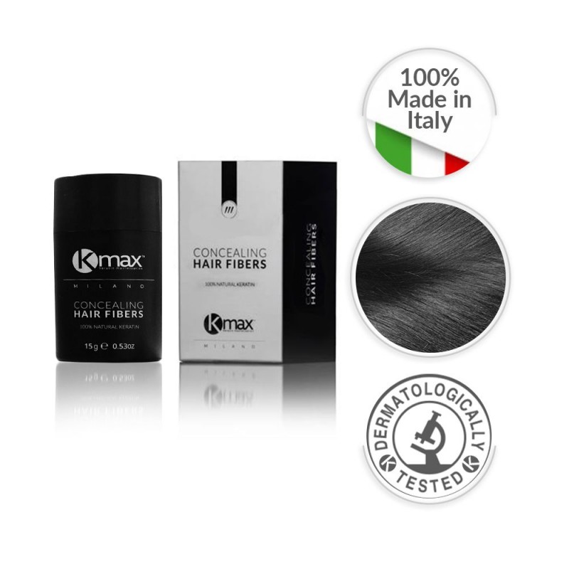 Kmax Concealing Hair Fibers hat eine innovative Formel, dank der die Mikrofasern aus Keratin elektrostatisch an dünner werdenden, feinen und semi-transparenten Haaren haften. Innerhalb weniger Sekunden entsteht unglaubliches Volumen und die dünneren Stellen auf der Kopfhaut werden kaschiert.