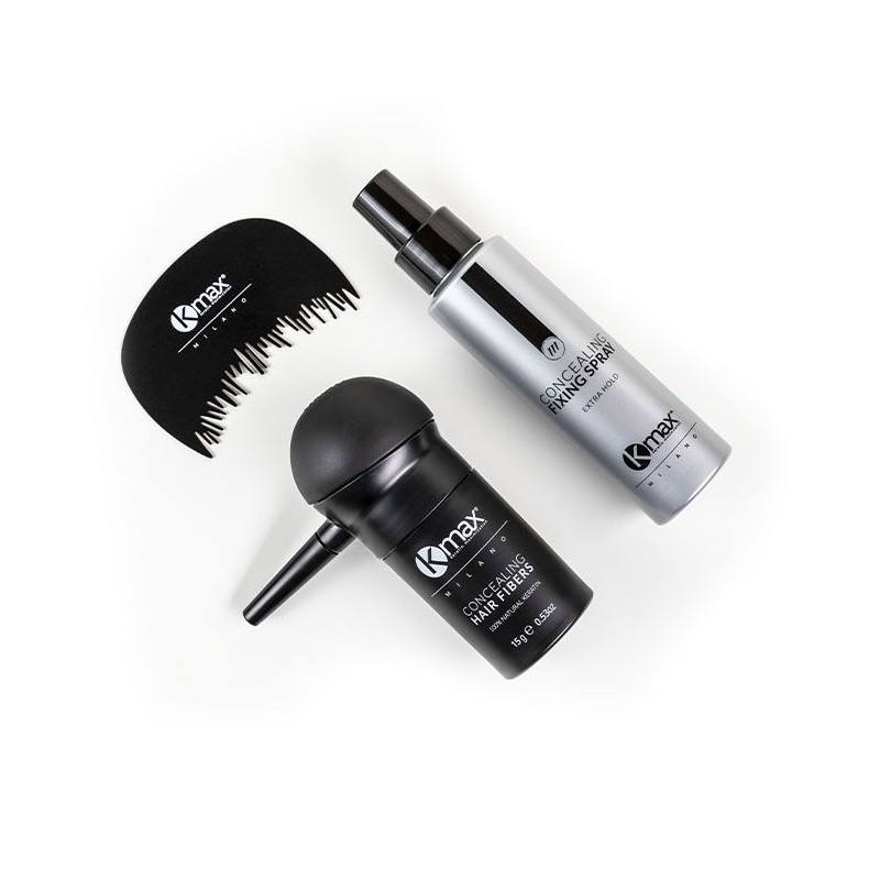 Kmax Concealing Fixing Spray ist ein angenehm parfümierter Haarlack ohne Treibgas. Er wurde speziell entwickelt, um die Haftkraft der Kmax Concealing Hair Fibers an den Haaren und der Kopfhaut zu verbessern. Die Frisur hält den ganzen Tag lang. Ein wenig Lack aus einer Entfernung von 20-30 cm ist ausreichend. Die Polymere der Wirkformel vernetzen gleichmäßig auf der Frisur, ohne das Haar schwerer werden zu lassen. Die Keratin-Mikrofasern des Kmax Concealing Hair Fibers haften so noch besser am Haar. Mit dem Haarlack ist die Frisur sehr wasserfest, geeignet für ein Bad im Meer oder im Schwimmbad.